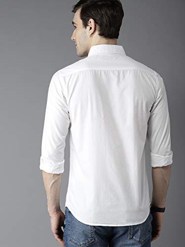 Dennis Lingo Men’s Solid Slim Fit Cotton Casual Shirt with Spread Collar & Full Sleeves
